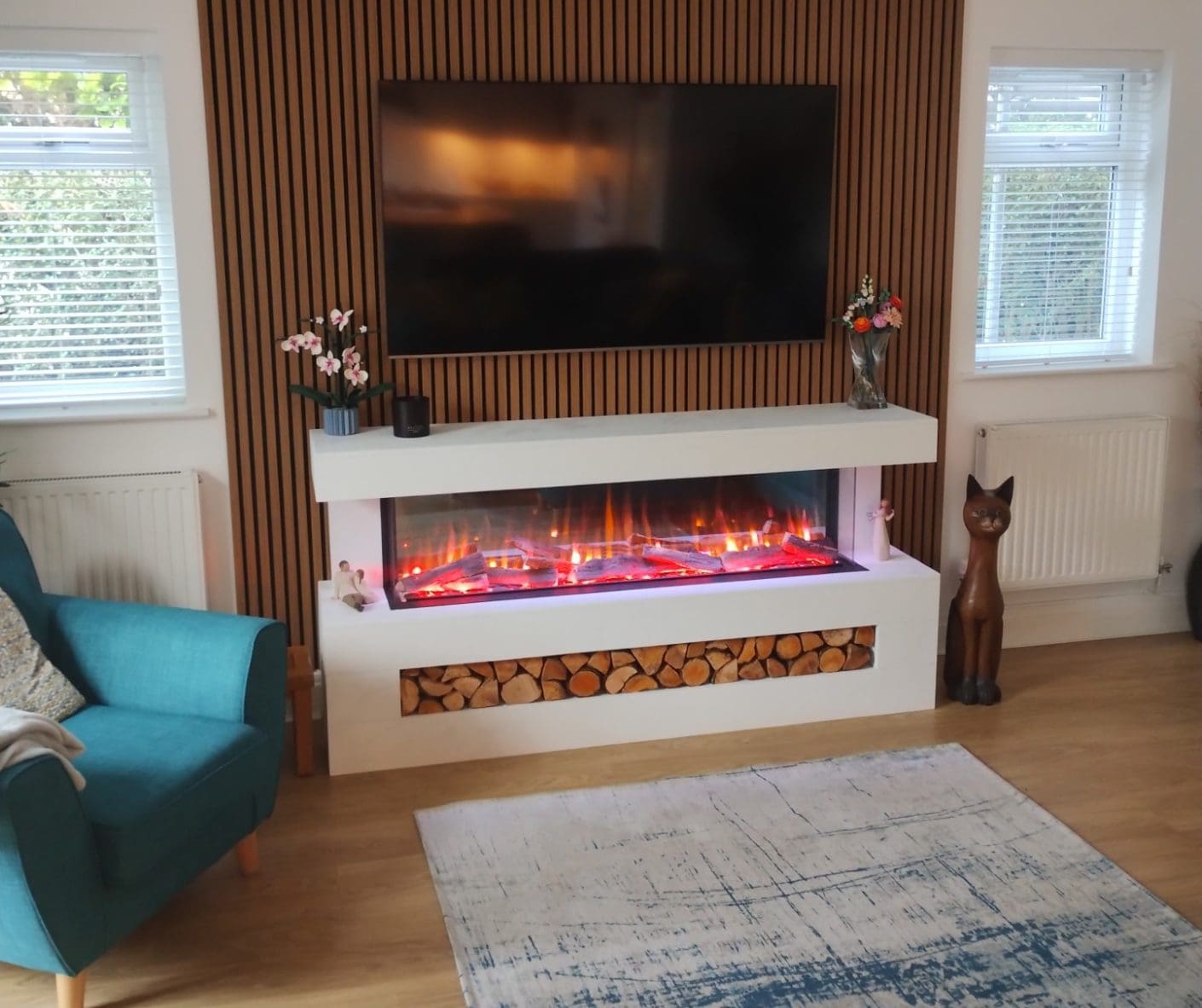 ""I’m so happy with my electric suite It’s beautifully designed, easy to use, and gives off a lovely, cozy ambience. The build quality is excellent—an elegant and beautiful centerpiece "